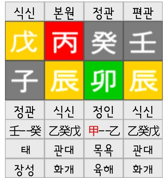 임진년, 계묘월, 병진일주, 무자시